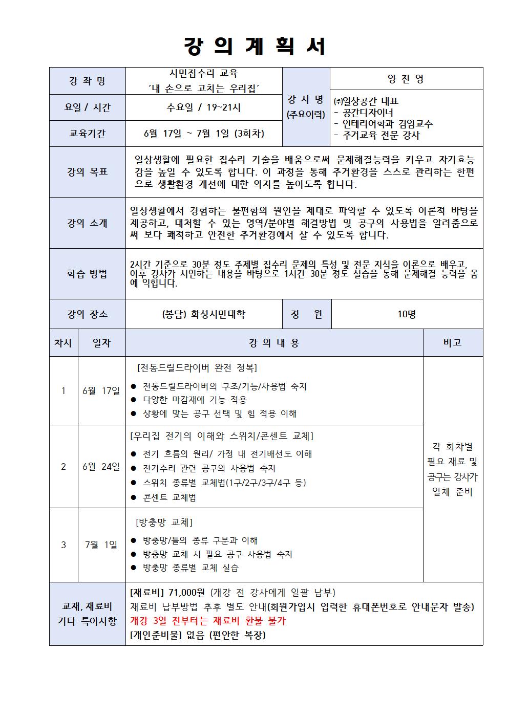 [직장인 달빛학교]시민집수리 교육: 내 손으로 고치는 우리집(장소:봉담)