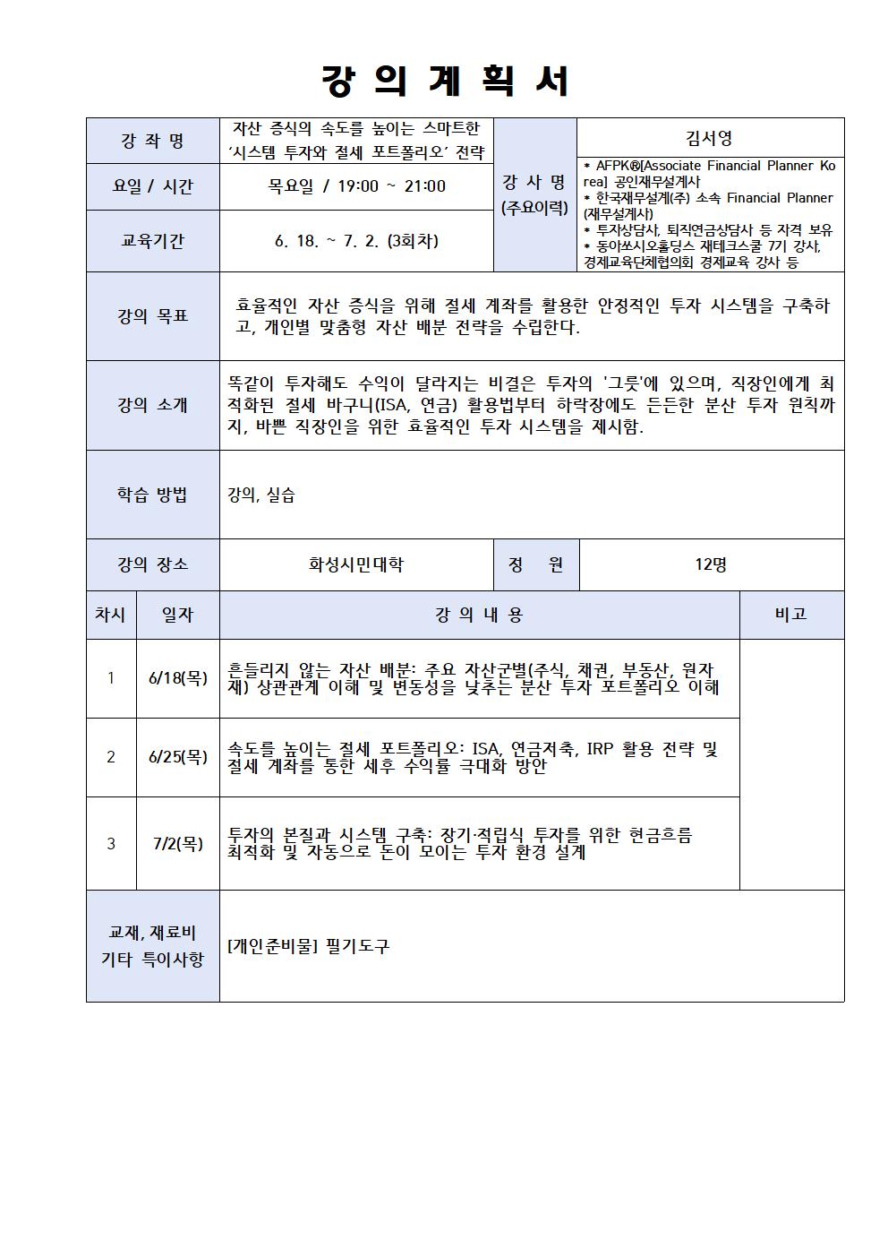 [직장인 달빛학교]자산 증식의 속도를 높이는 스마트한<시스템 투자와 절세 포트폴리오>전략 (장소:봉담)