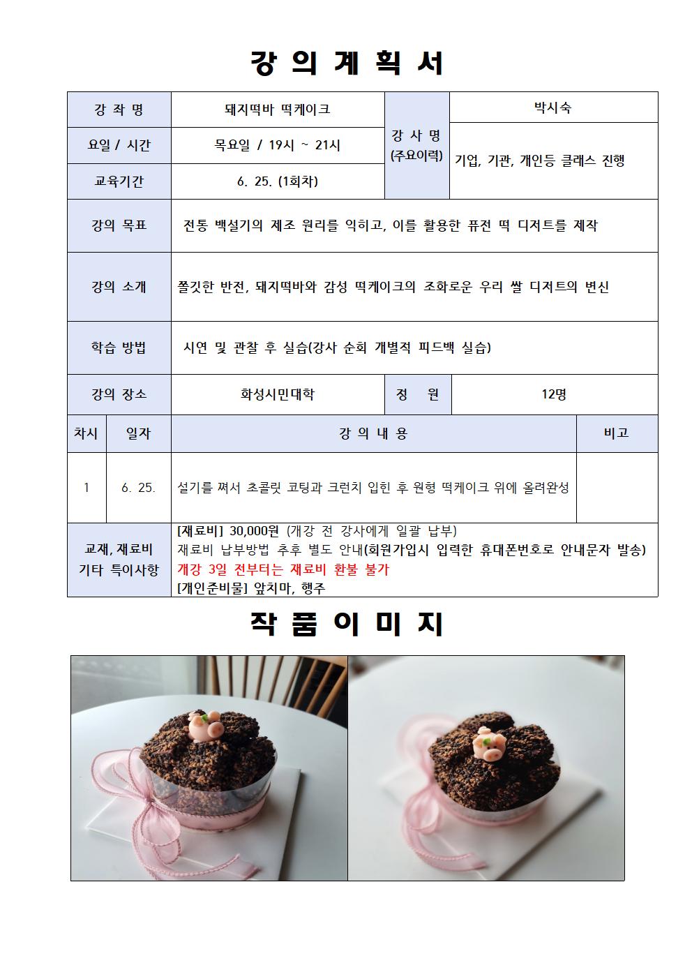 [직장인 달빛학교]돼지떡바 떡케이크(장소:봉담)