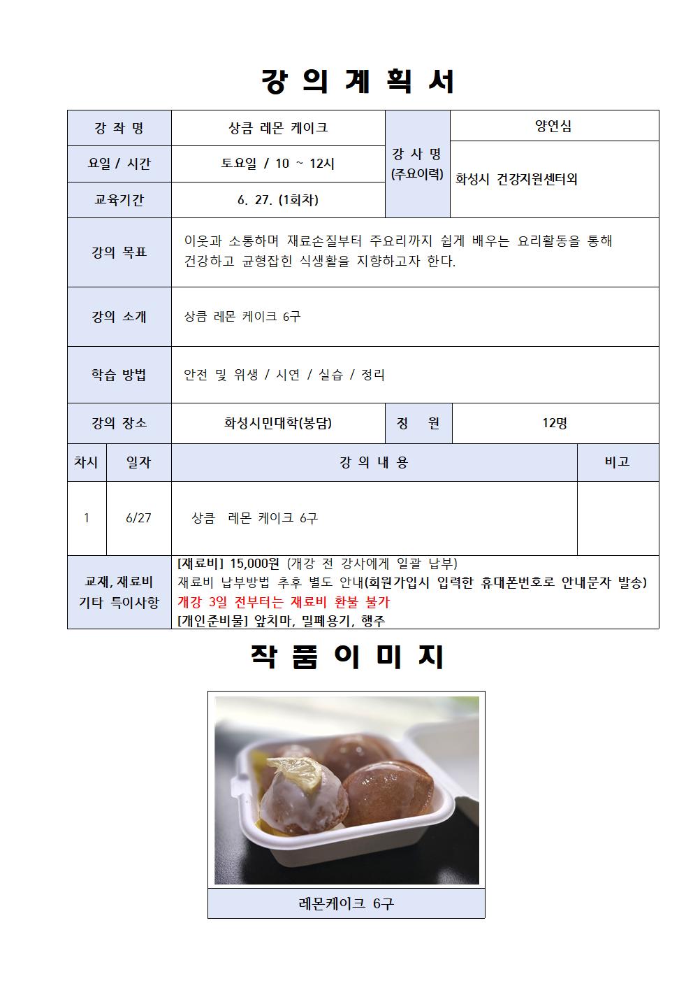 [직장인 달빛학교]상큼 레몬 케이크(장소:봉담)