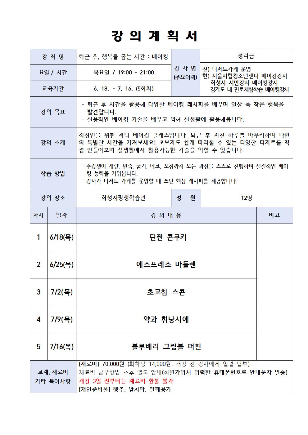 [직장인 달빛학교]퇴근 후, 행복을 굽는 시간: 베이킹(장소:동탄)