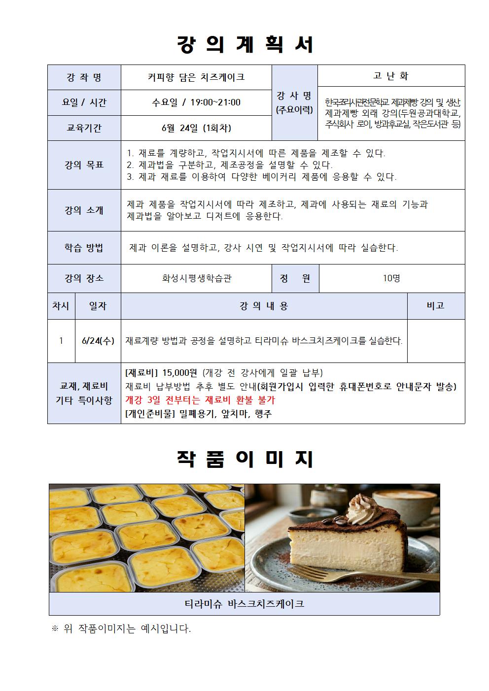[직장인 달빛학교]커피향 담은 치즈케이크(장소:동탄)