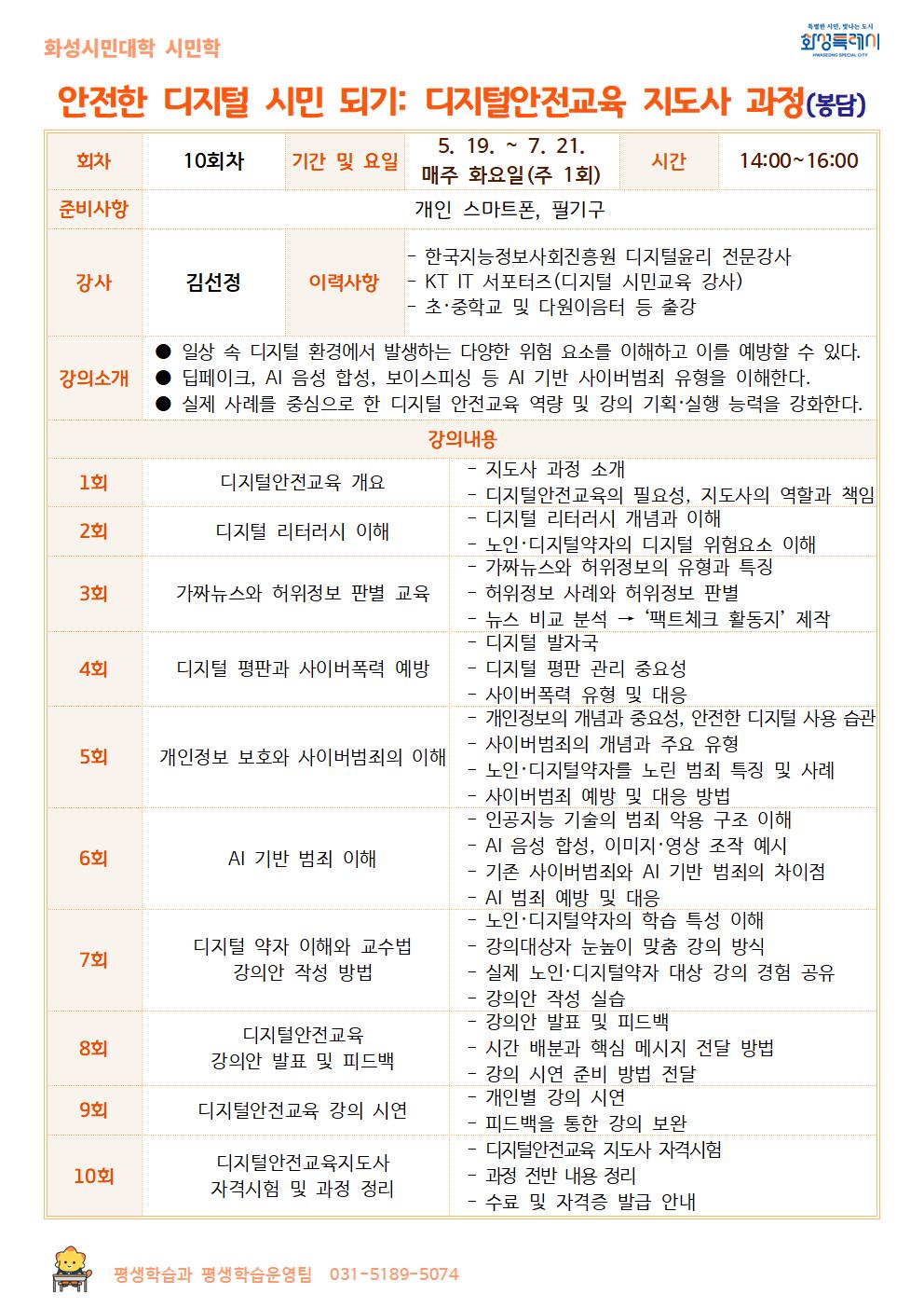 [화성시민대학][시민학] 스마트 시민, 안전한 화성: 디지털안전교육 지도사 과정(봉담)