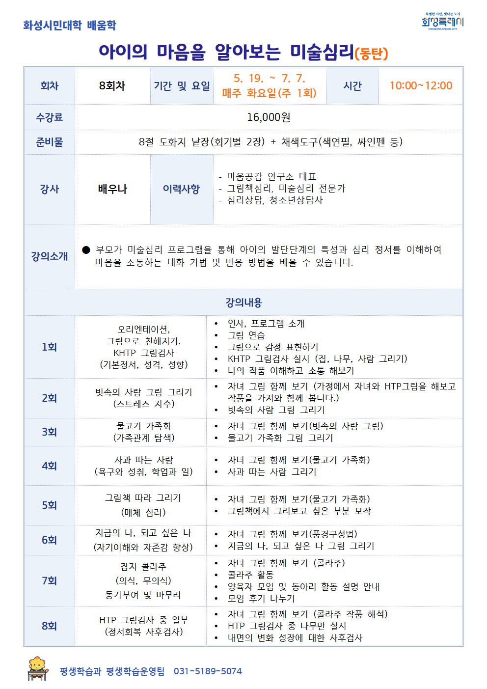 [화성시민대학] 아이의 마음을 알아보는 미술심리(동탄)