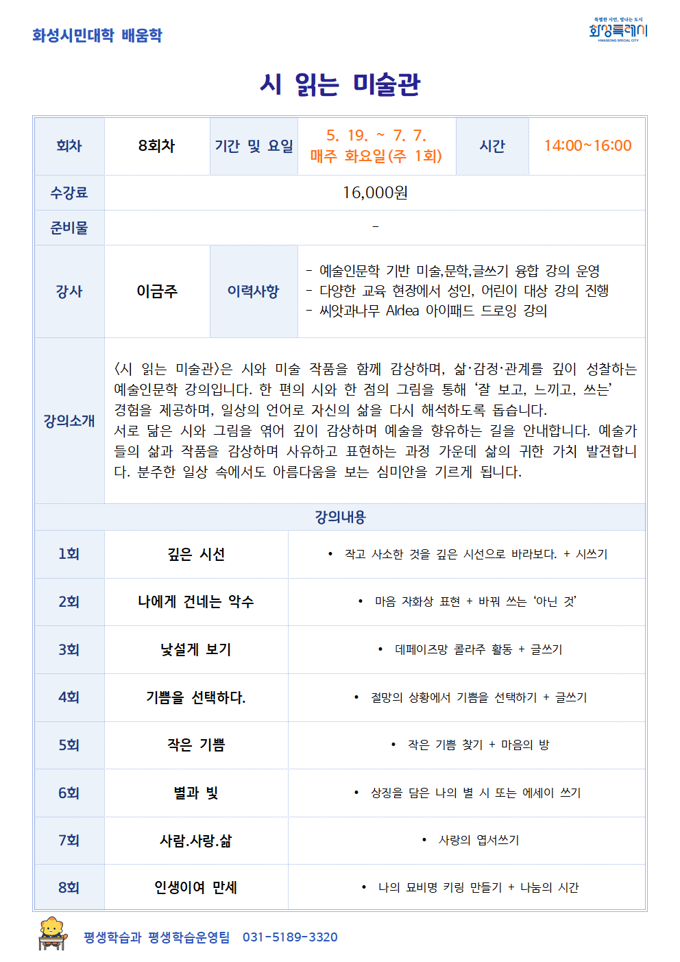 [화성시민대학] 시 읽는 미술관(동탄)
