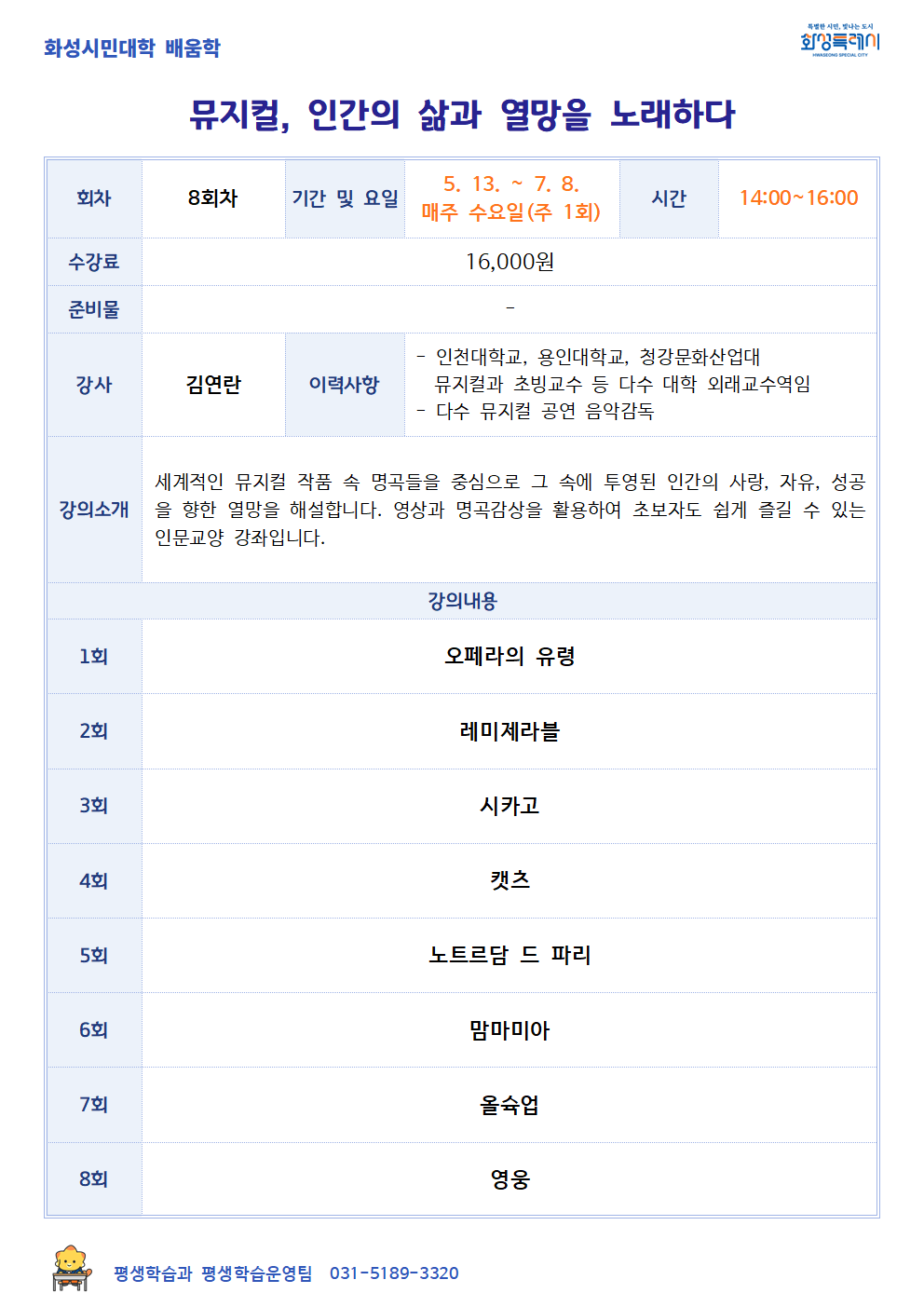 [화성시민대학] 뮤지컬, 인간의 삶과 열망을 노래하다(동탄)
