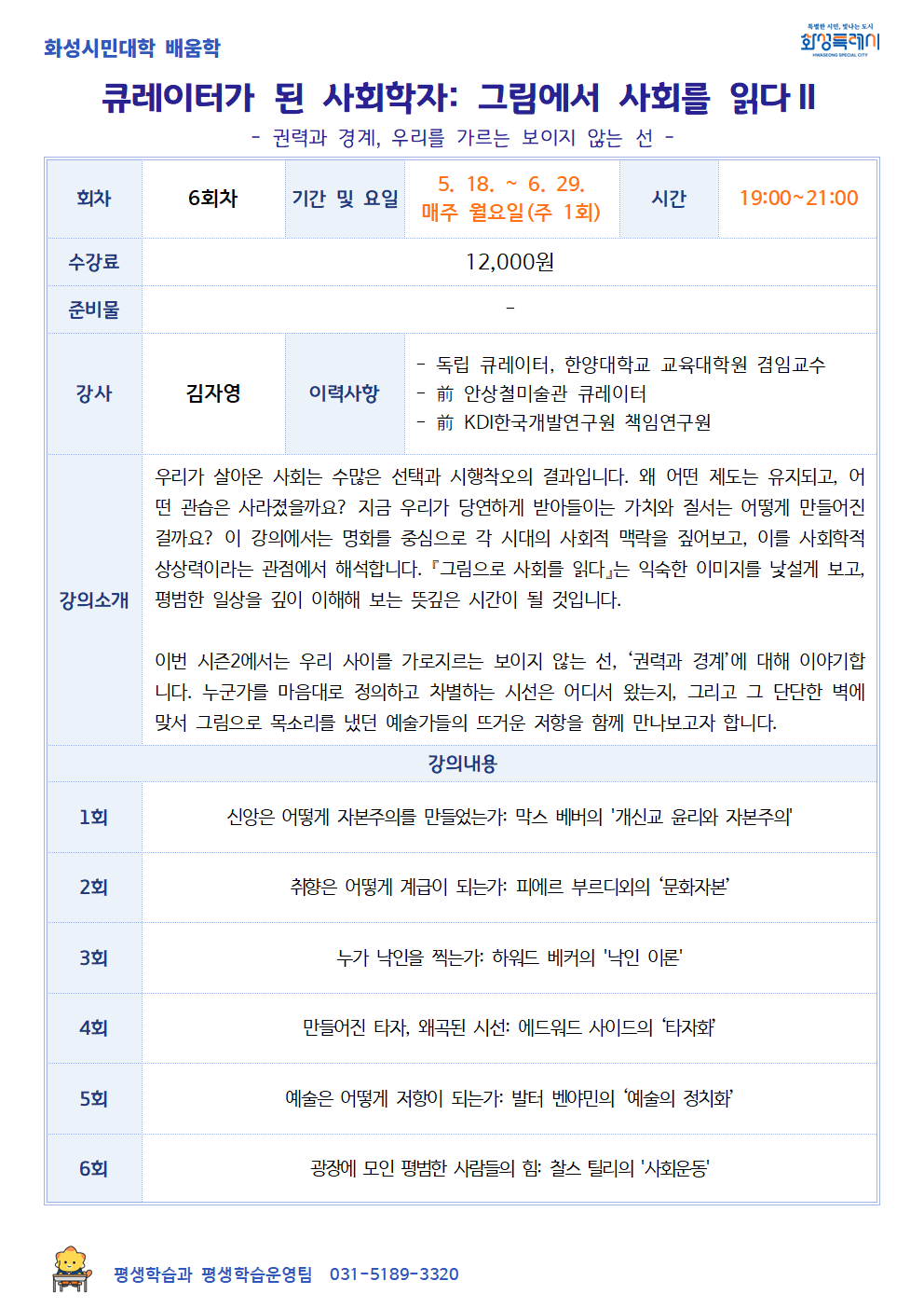 [화성시민대학] 큐레이터가 된 사회학자: 그림에서 사회를 읽다 Ⅱ(동탄)