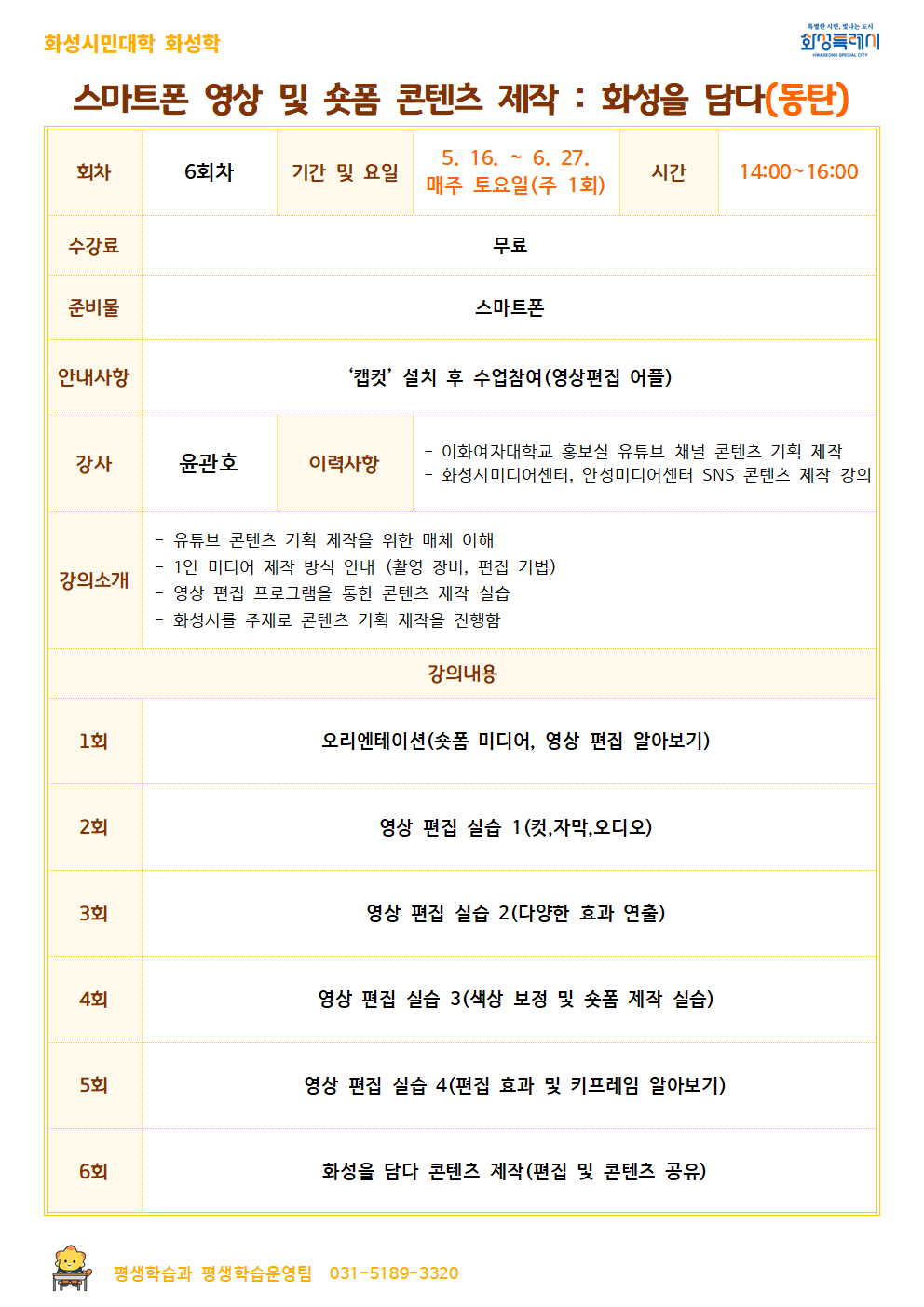 [화성시민대학][화성학] 스마트폰 영상 및 숏폼 콘텐츠 제작 : 화성을 담다(동탄)