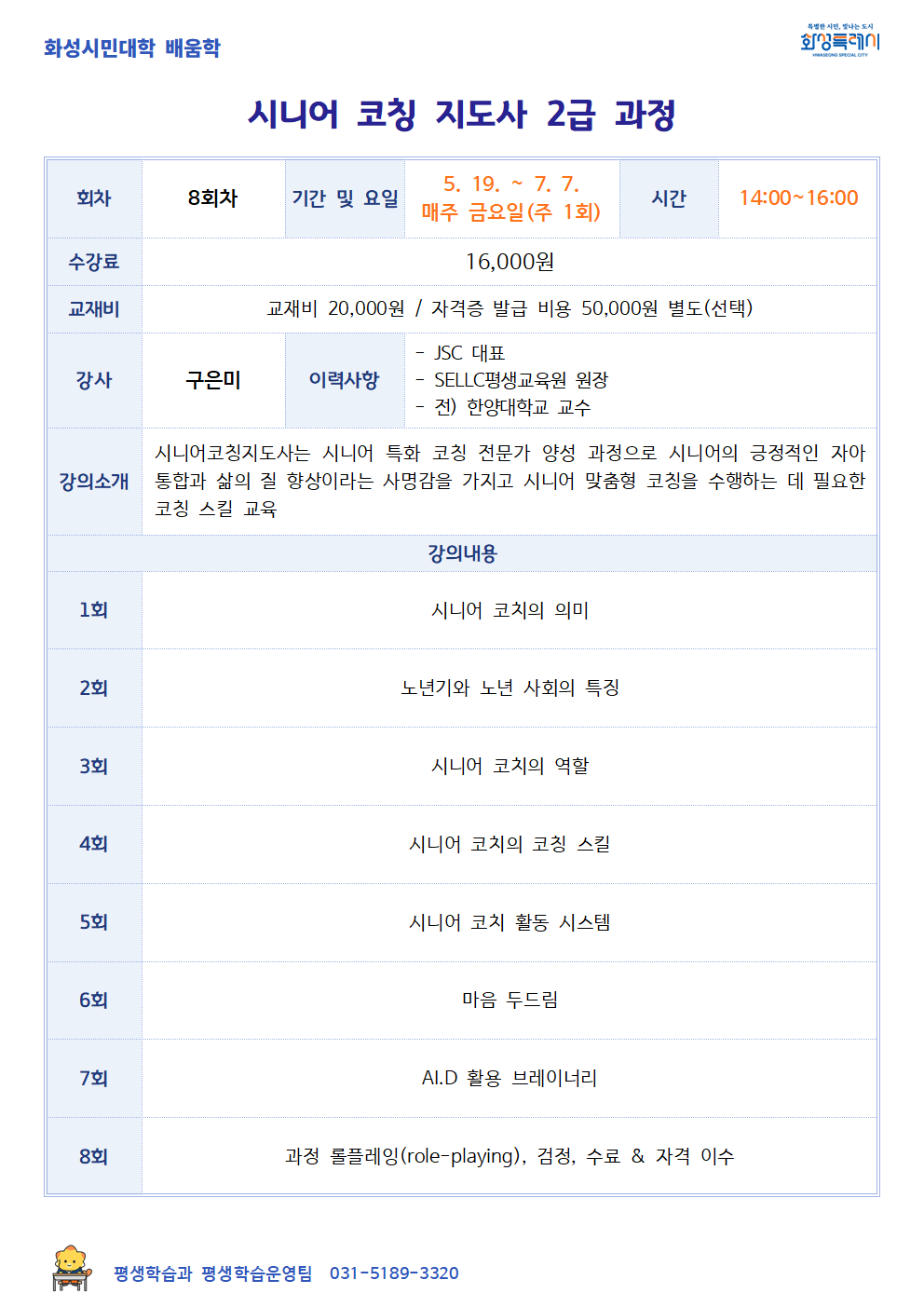 [화성시민대학] 시니어 코칭 지도사 2급 과정(봉담)