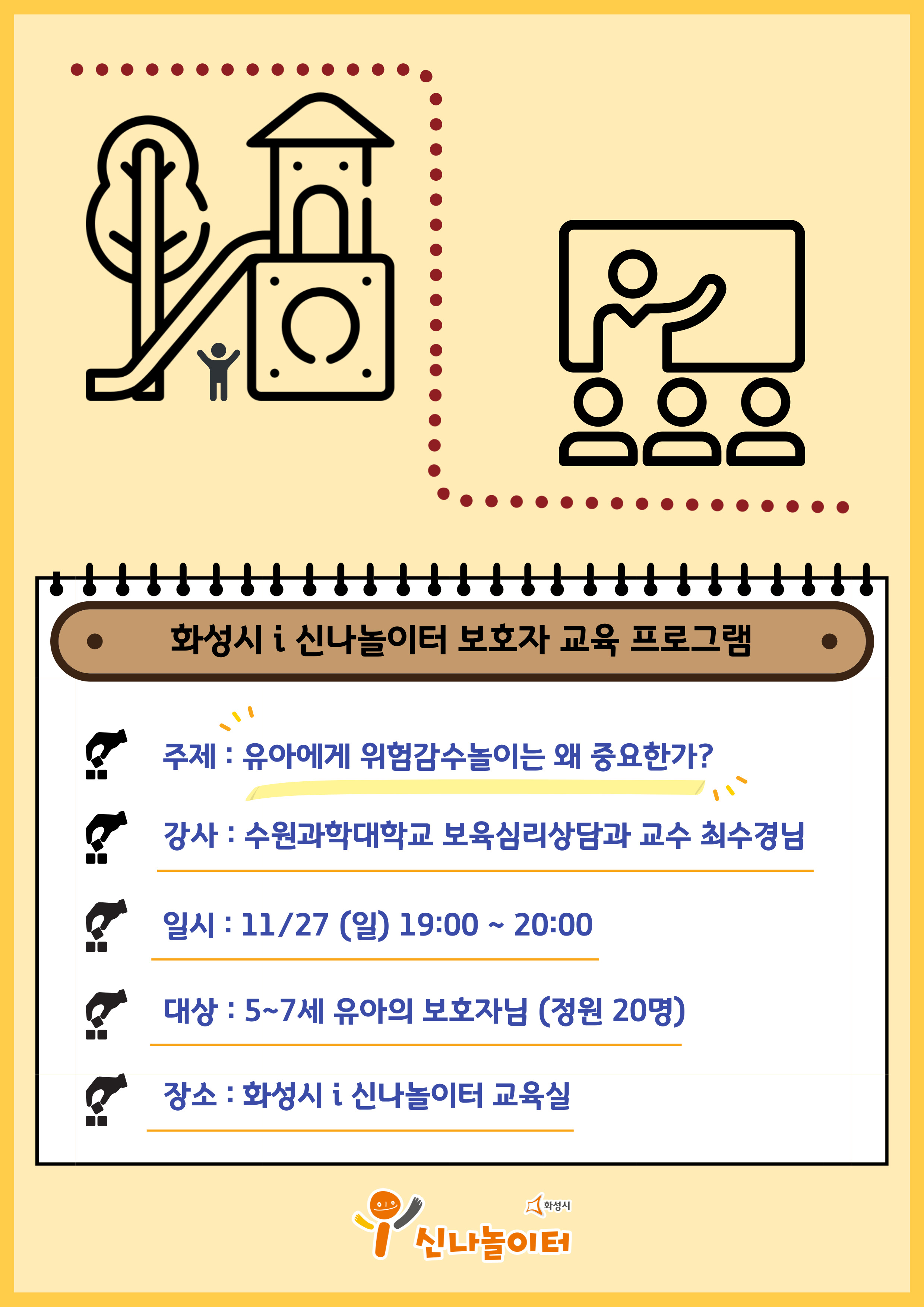 [보호자 교육 - 유아에게 위험감수놀이는 왜 중요한가?] 화성시 i 신나놀이터 (예약 신청 전 상세정보 확인 필수)