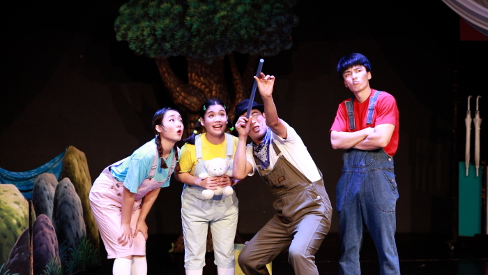 ○ 공연내용: 주인공 어린이가 아빠와 함께 요술 지팡이로 세 가지 동화(토끼와 거북이, 금도끼 은도끼, 피터팬) 속으로 들어가는 이야기