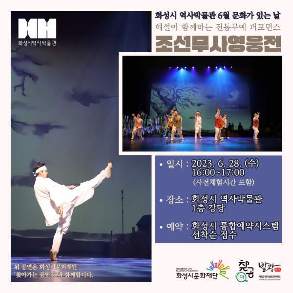 [현장접수 가능] 6/28 (수) 전통무예 퍼포먼스 <조선무사영웅전> (화성시 역사박물관 6월 문화가 있는 날)