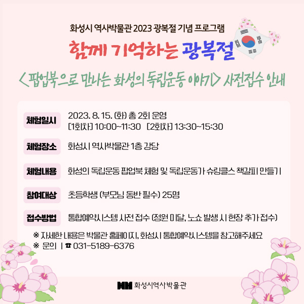 화성시 역사박물관 <팝업북으로 만나는 화성의 독립운동 이야기> 접수