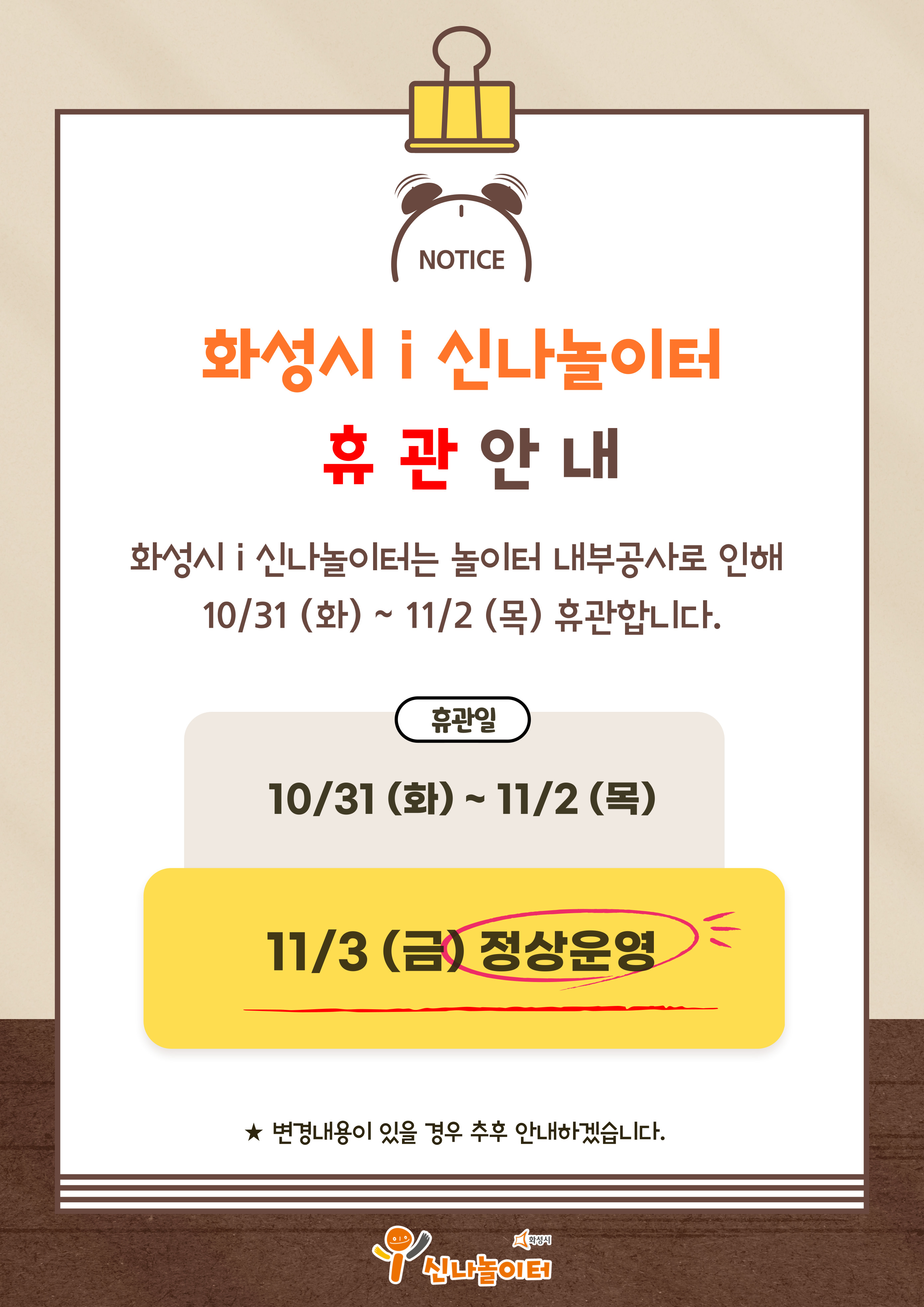 ☞ 궁금하신 점이나 문의사항은 화성시 i 신나놀이터 (031-373-3013) 로 전화주시기 바랍니다.
