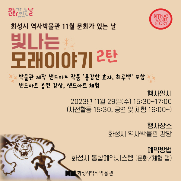 11/29(수) 샌드아트 공연 및 체험 <빛나는 모래이야기 2탄> (화성시 역사박물관 11월 문화가 있는 날)