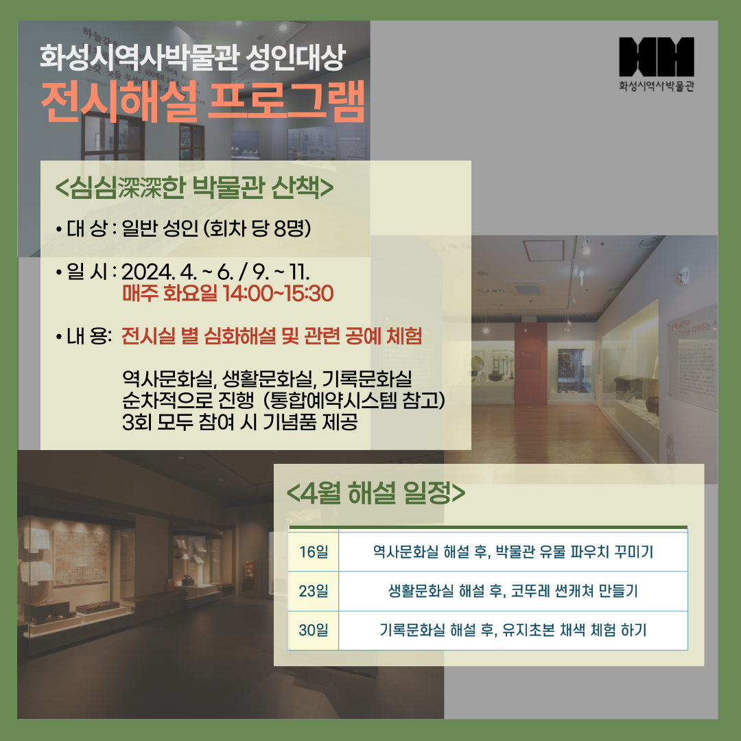 화성시역사박물관 전시해설 프로그램 <심심深深한 박물관 산책> - 4월