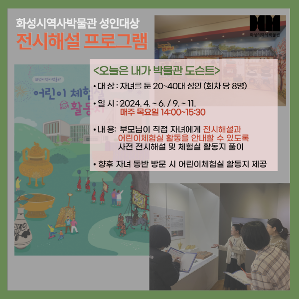 (성인대상) 화성시역사박물관 전시해설 프로그램 <오늘은 내가 도슨트> 4월, 5월