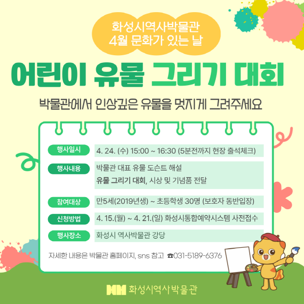 (월요일까지 접수) 4/24 <어린이 유물 그리기 대회> (화성시 역사박물관 4월 문화가 있는 날)
