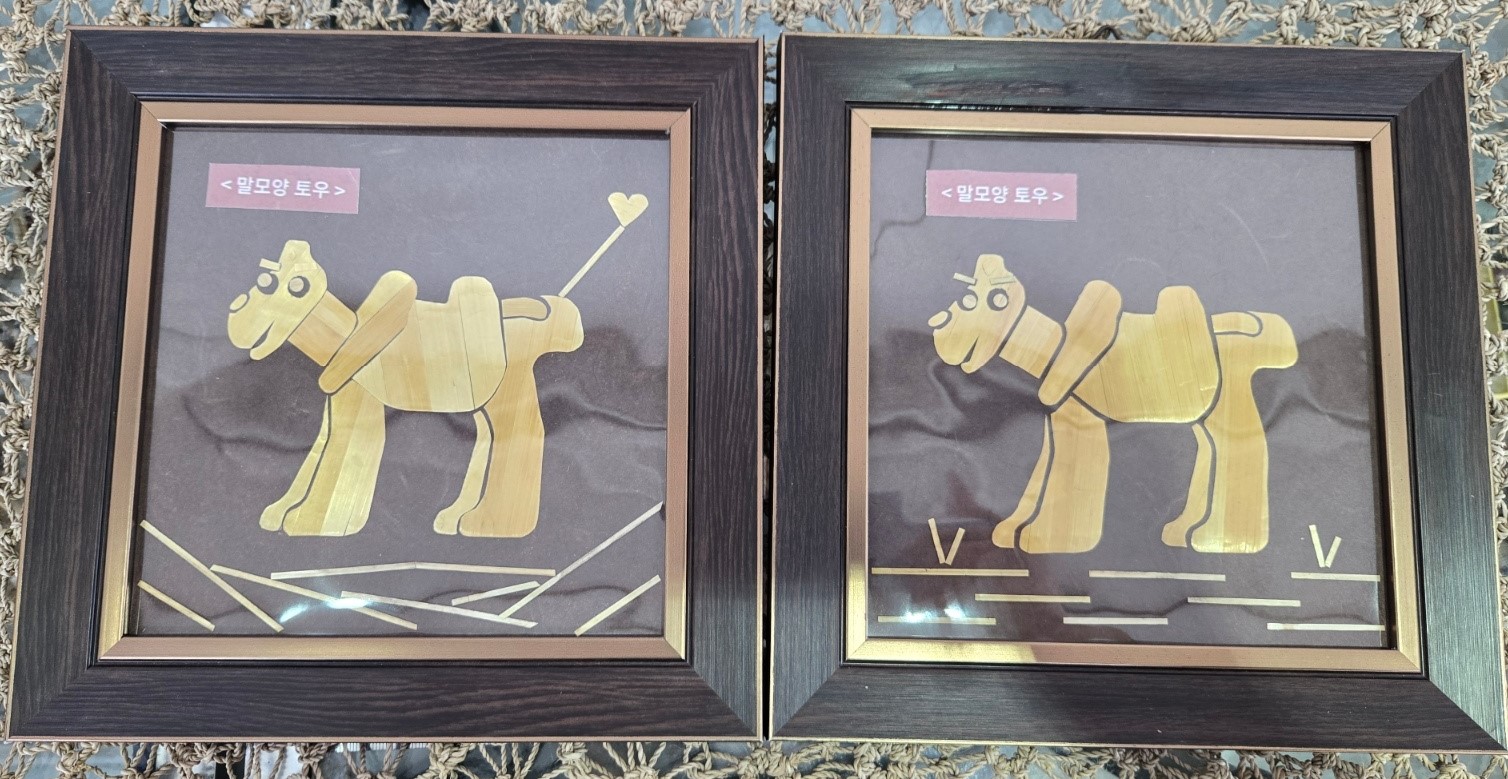 ■ 프로그램 내용 : 전시해설 후 맥간공예에 대해 이해, 유물 활용 보릿대 액자 만들기