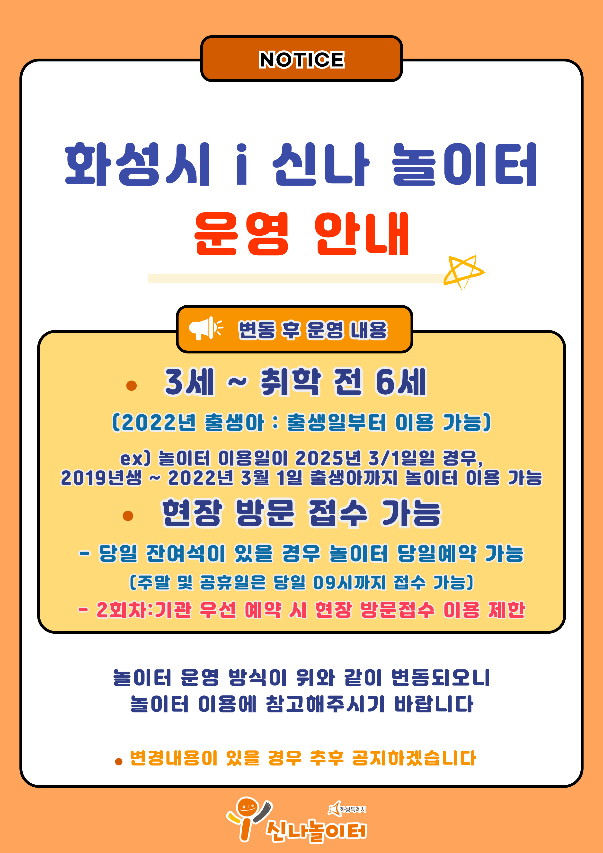☞ 궁금하신 점이나 문의사항은 화성시 i 신나 놀이터 (031-373-3013) 로 전화주시기 바랍니다.
