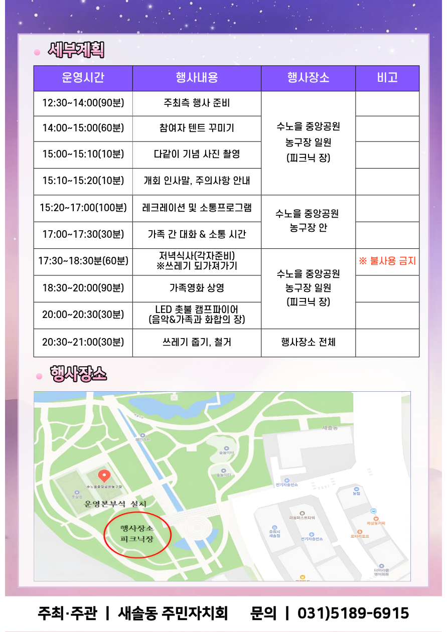 - 수노을 중앙공원 피크닉장(농구장 맞은편)
