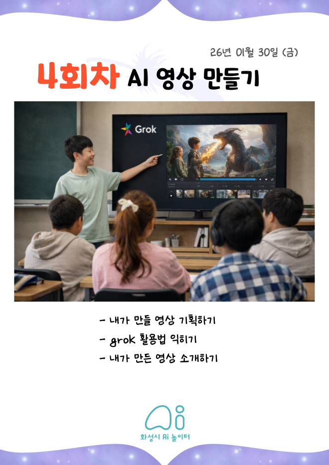 초등학생을 위한 방학 특별 프로그램 Ai 에듀테크 4회차 (예약 신청 전 상세정보 확인 필수)