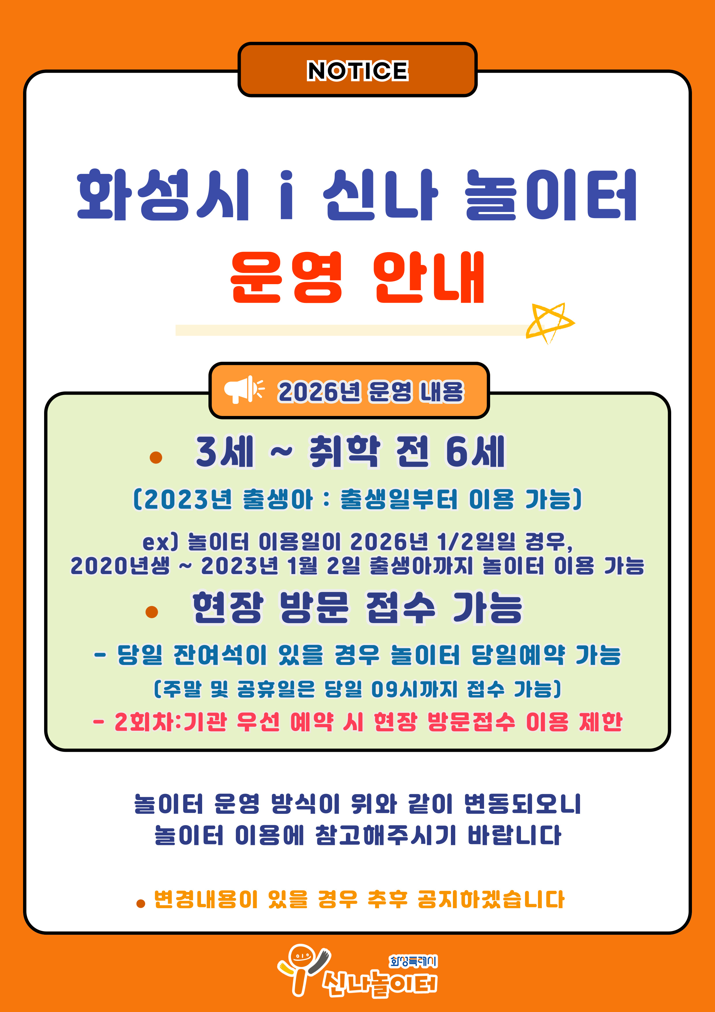 - 화성시 i 신나 놀이터는 예약제로 운영됩니다.