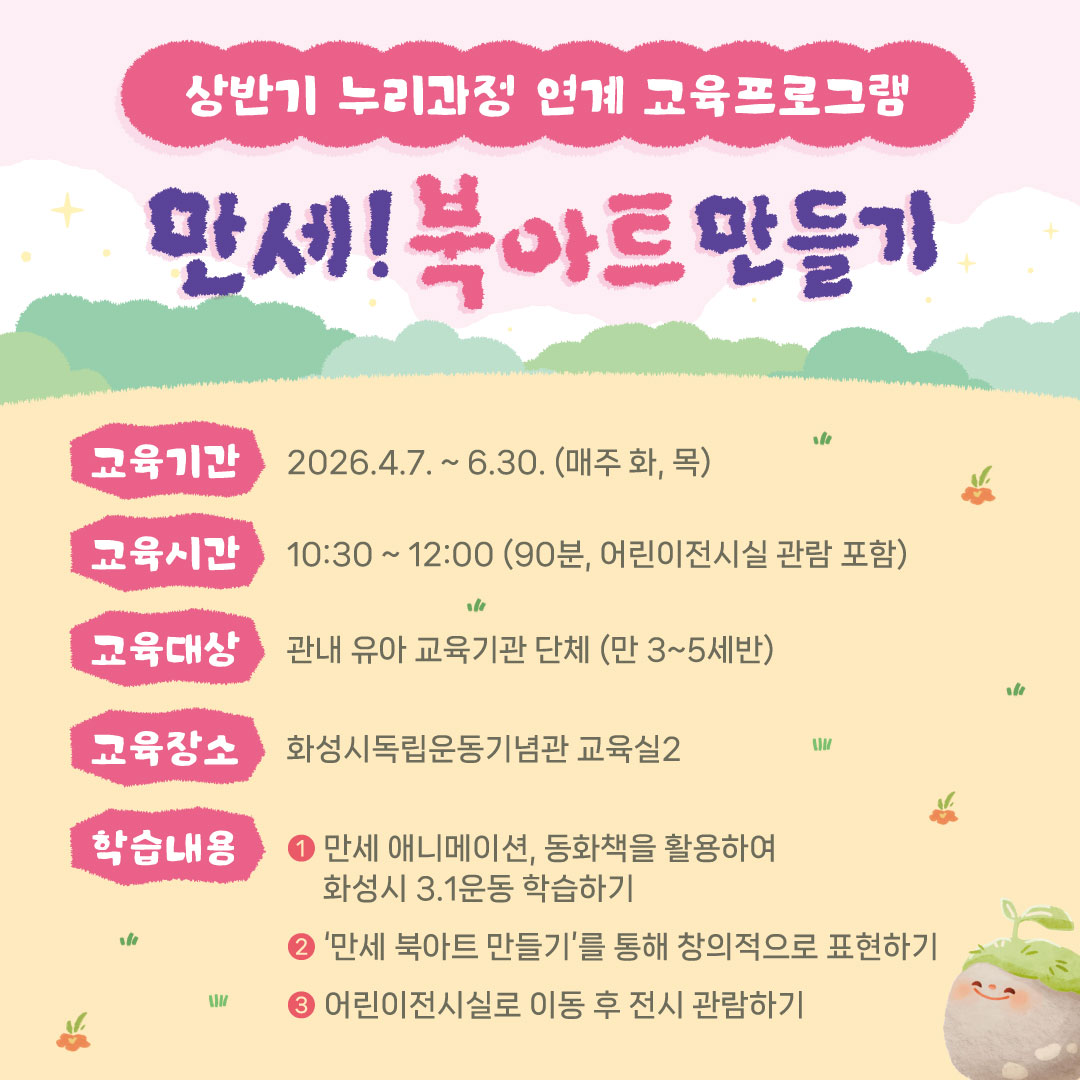 - 프로그램 운영 중 직원의 사진 촬영이 이뤄질 수 있으며, 기념관 홍보 채널 및 결과물 제작에 사용될 수 있습니다.(비상업적 용도)