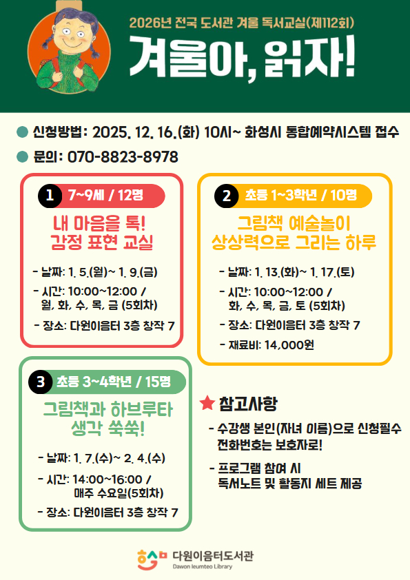 <2026년 다원이음터도서관 겨울 독서교실>