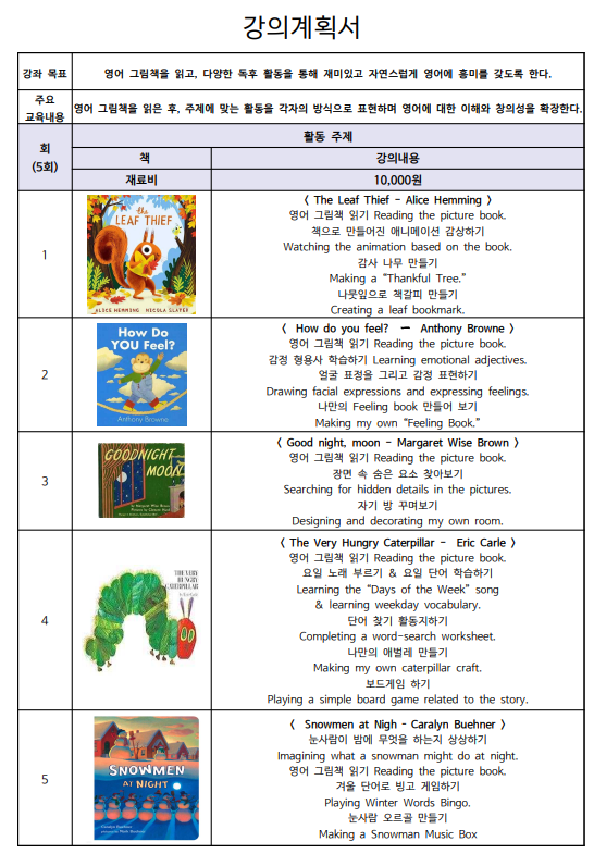 [노을빛도서관] 2026년 겨울독서교실 <영어 그림책 탐험대>(초등 3~4학년)