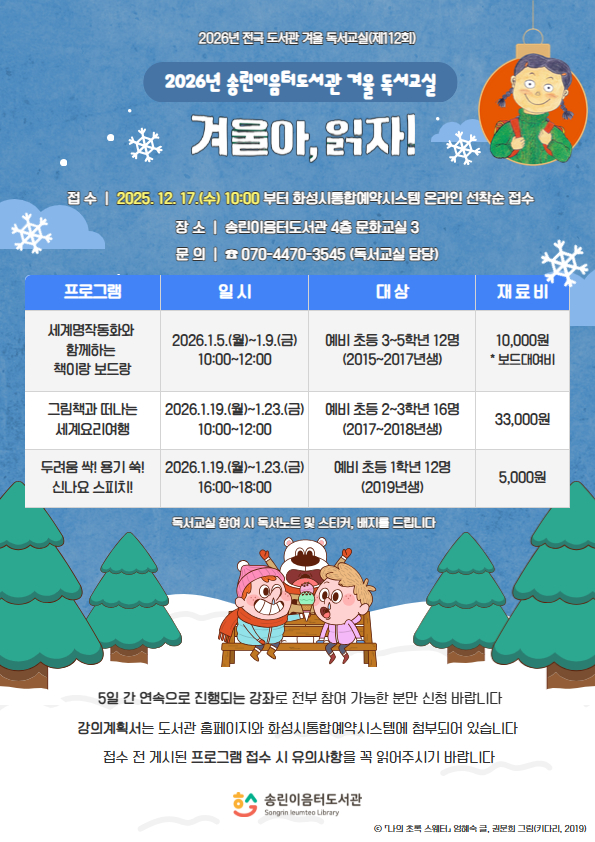 - 문 의 : ☎ 070-4470-3545 (독서교실 담당)