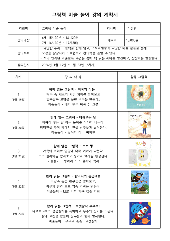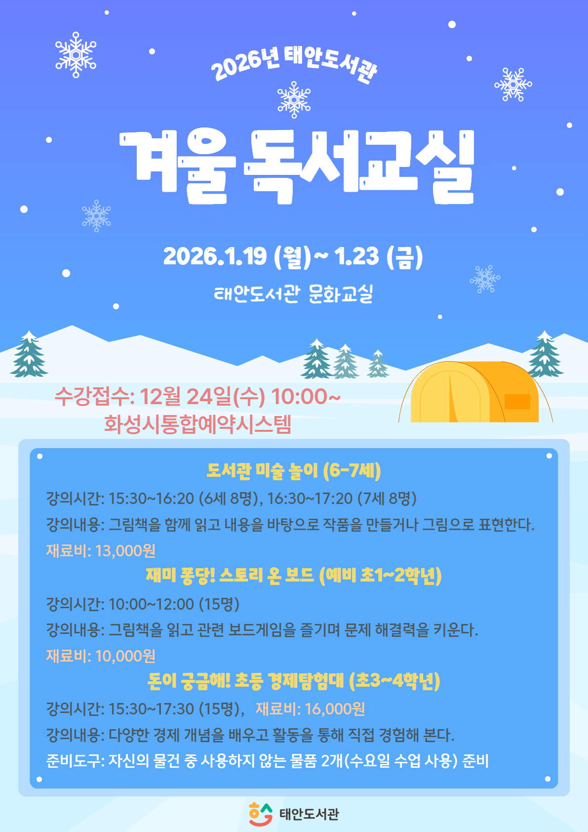 [태안도서관 겨울독서교실 <그림책 미술 놀이> 운영 안내]