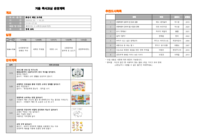 [태안도서관 겨울독서교실 <돈이 궁금해! 초등 경제탐험대> 운영 안내]