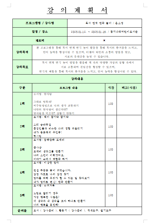 * 강사 및 도서관 사정에 따라 운영 사항이 변경될 수 있습니다.
