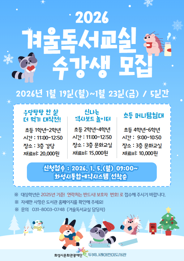 << 2026년 두빛나래어린이도서관 겨울독서교실 수강생 모집 안내 >>