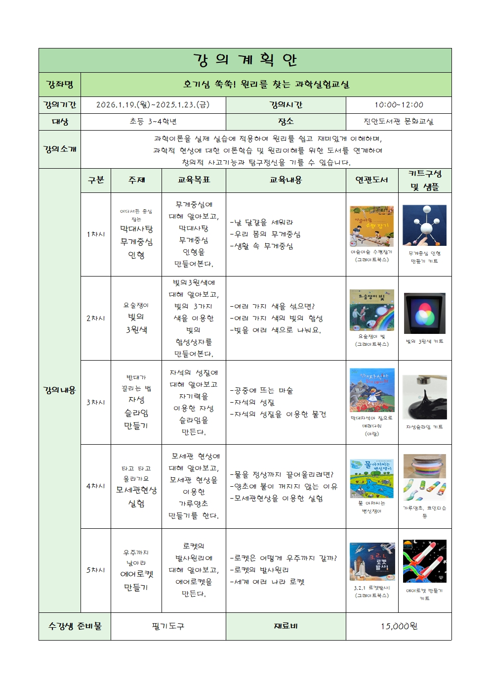 [진안도서관 겨울독서교실] 호기심 쑥쑥! 원리를 찾는 과학실험교실(초등3~4학년)