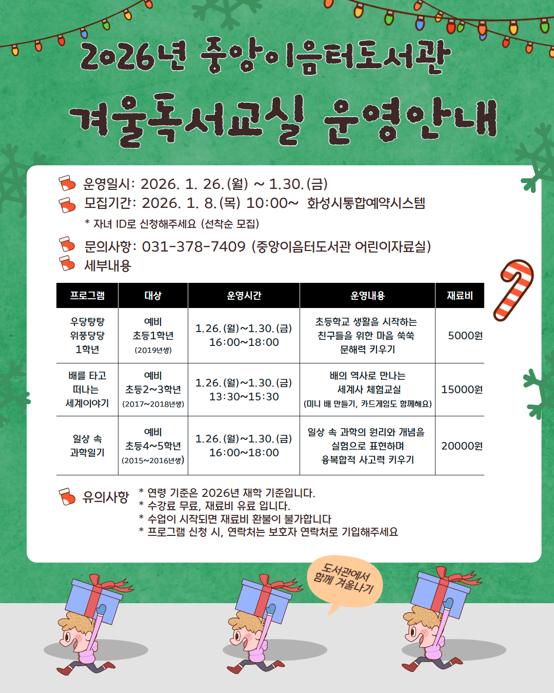 2026년 중앙이음터도서관 겨울독서교실 수강생 모집 안내