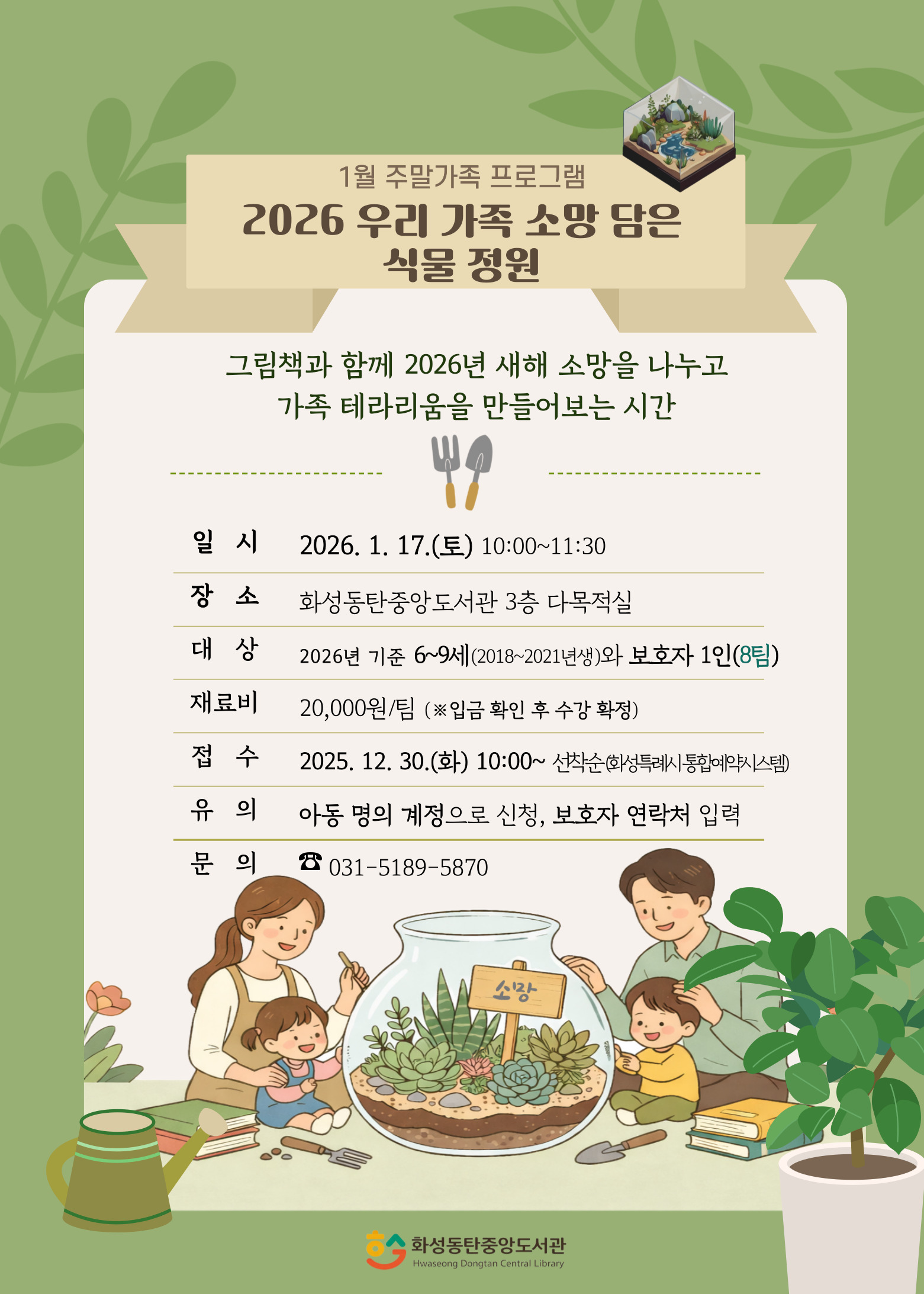 ○ 강의내용: 그림책으로 2026년 새해 소망을 나누며 우리 가족만의 다육 테라리움을 디자인하고 함께 만들기
