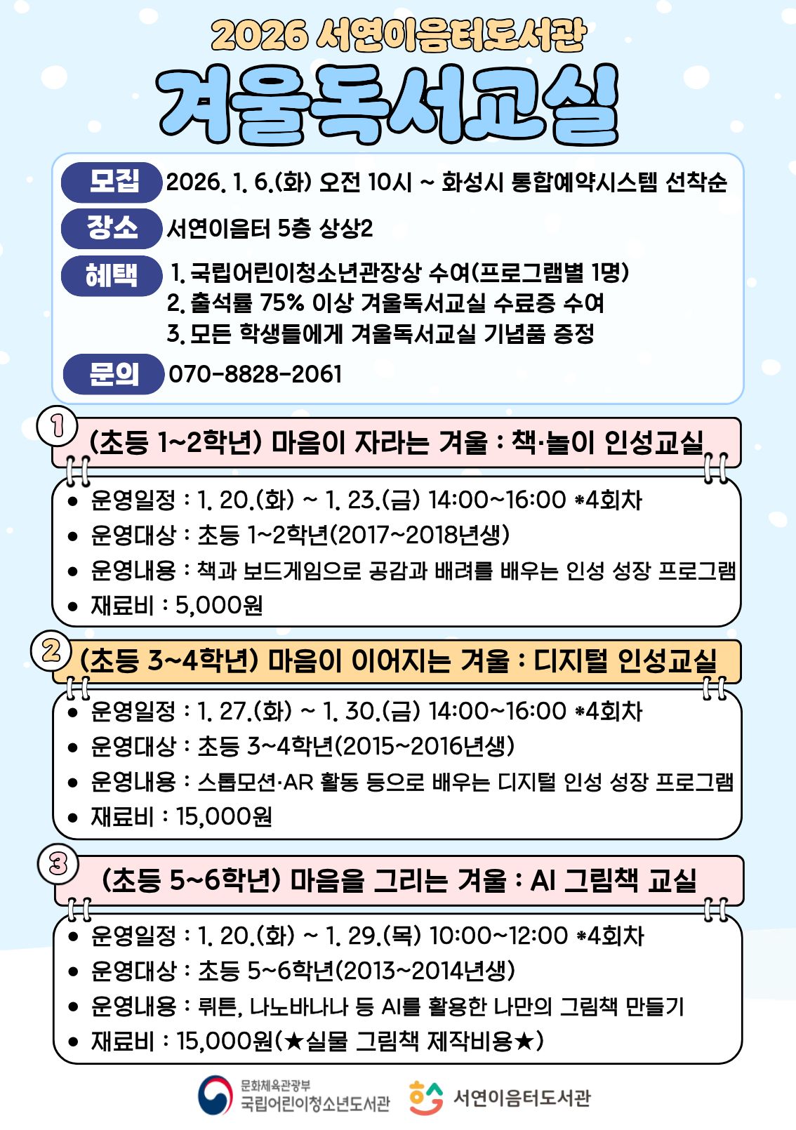 [서연이음터도서관] 겨울독서교실 <마음을 그리는 겨울: AI 그림책 교실> (초등 5~6)