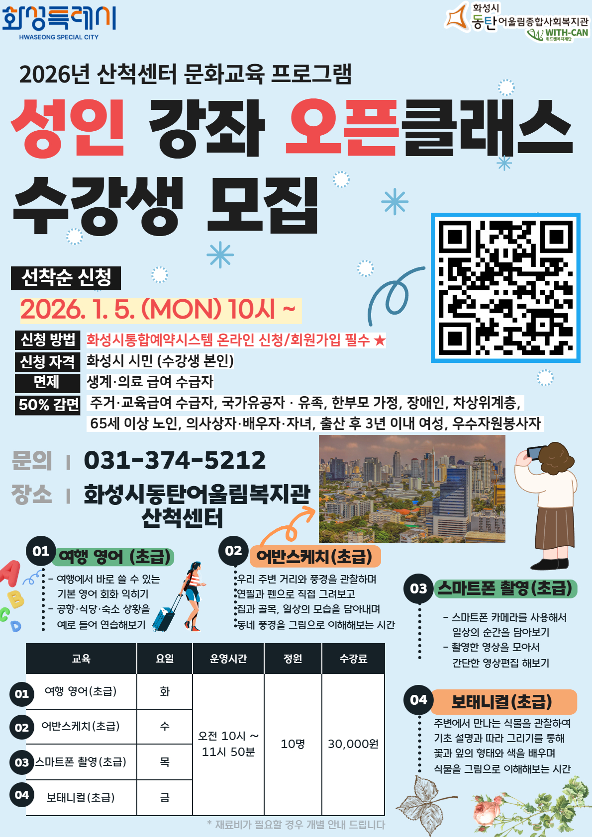 - 수강생 개인정보 보호를 위해 등본 등의 서류는 감면대상자에 한해 수강 기간 동안 담당자가 보관하며, 수강 종료 후 폐기됨을 안내드립니다.