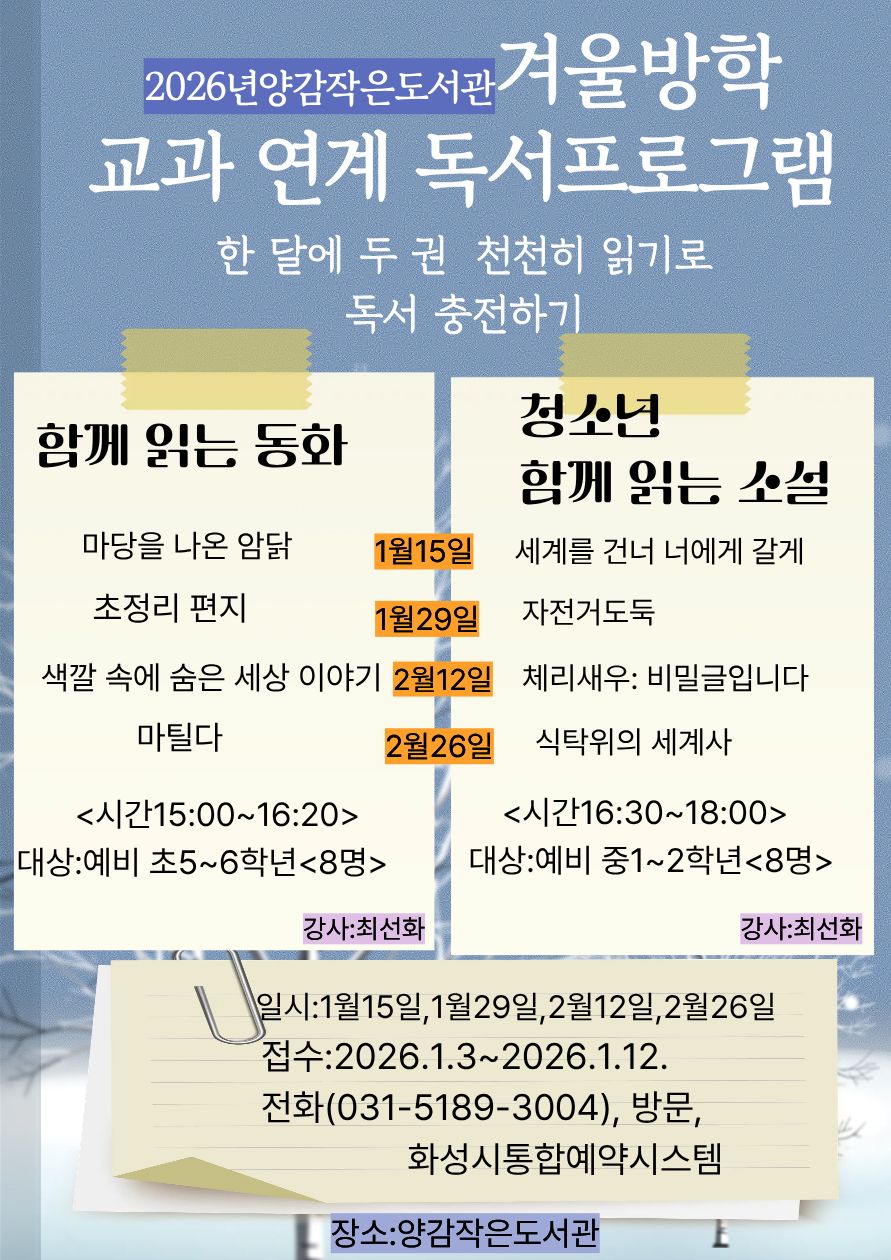 2026년 양감도서관 겨울방학교과연계독서프로그램