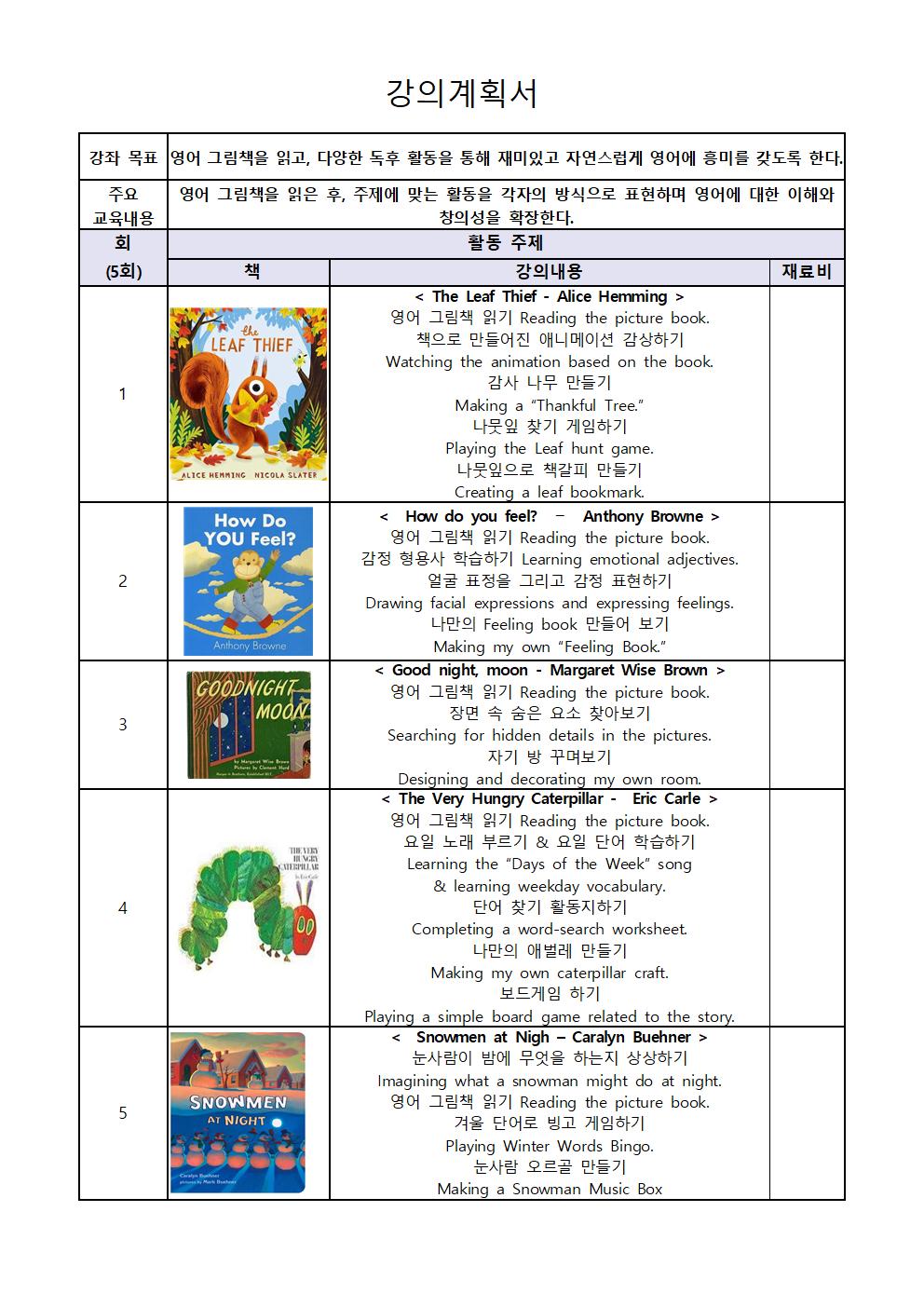 그림책을 통해 영어를 쉽게 배워보는 프로그램