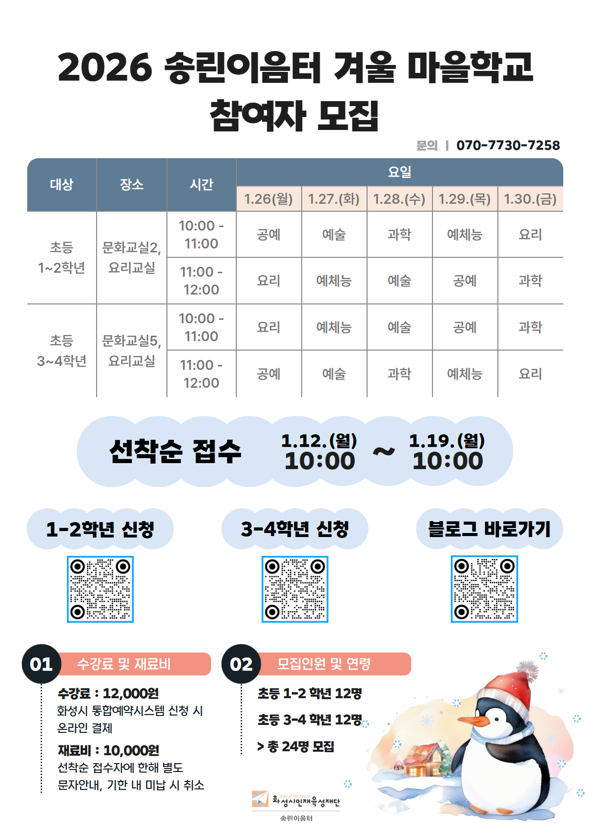 ○ 운영일시 : 2026.1.26.(월) - 1.30.(금) 10:00 - 12:00