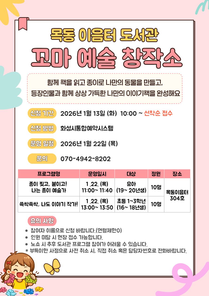 - 2026. 1. 13.(화) / 오전 10시 / 화성시통합예약시스템 선착순 접수