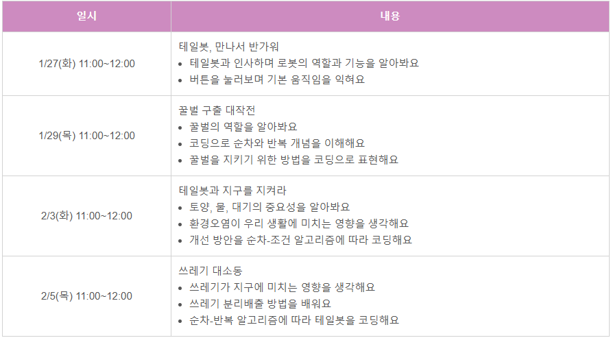 ◈ 운영 일시: 1/27(화), 1/29(목), 2/3(화), 2/5(목) 11:00~12:00