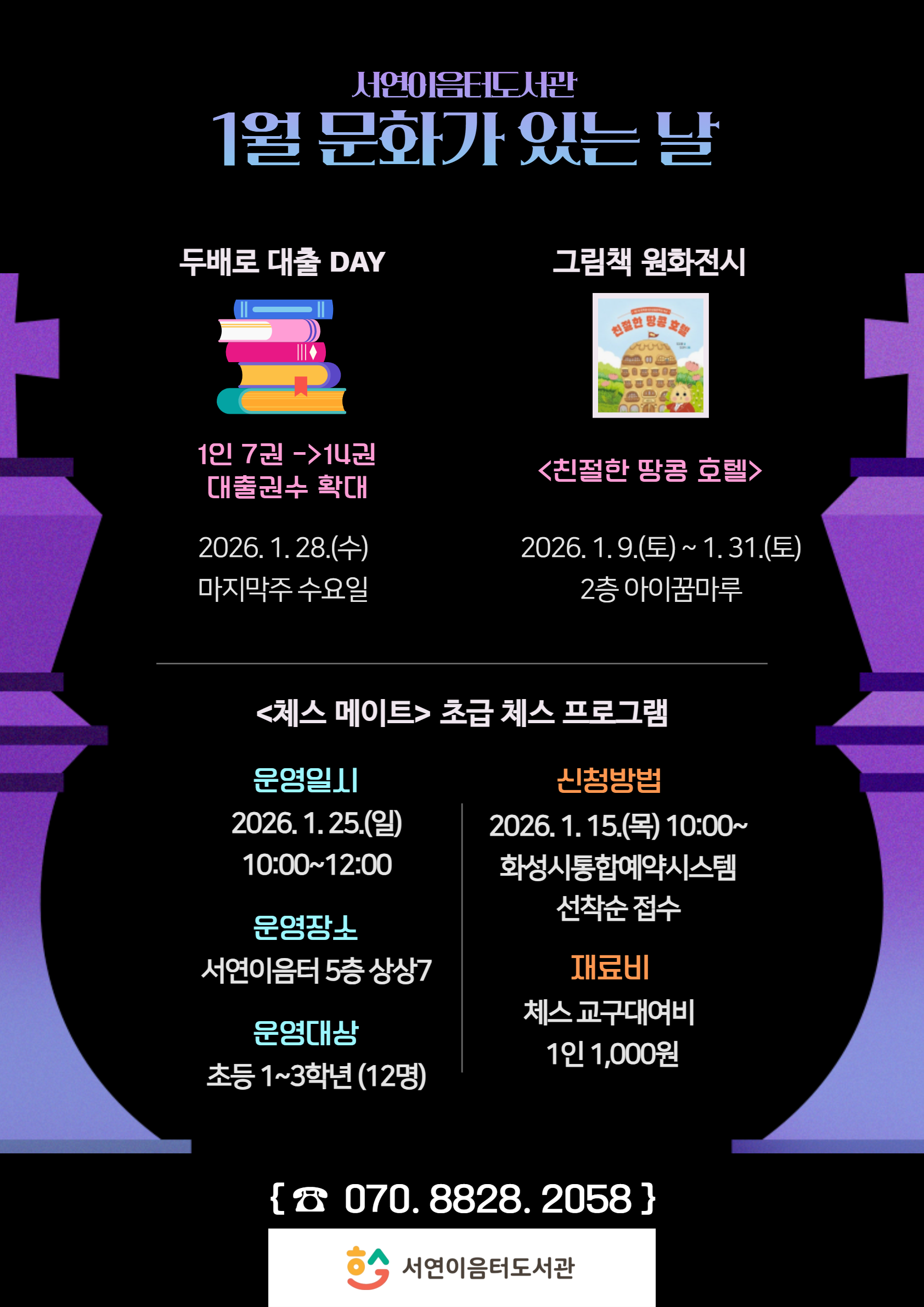 서연이음터도서관 1월 문화가 있는 날 프로그램 안내