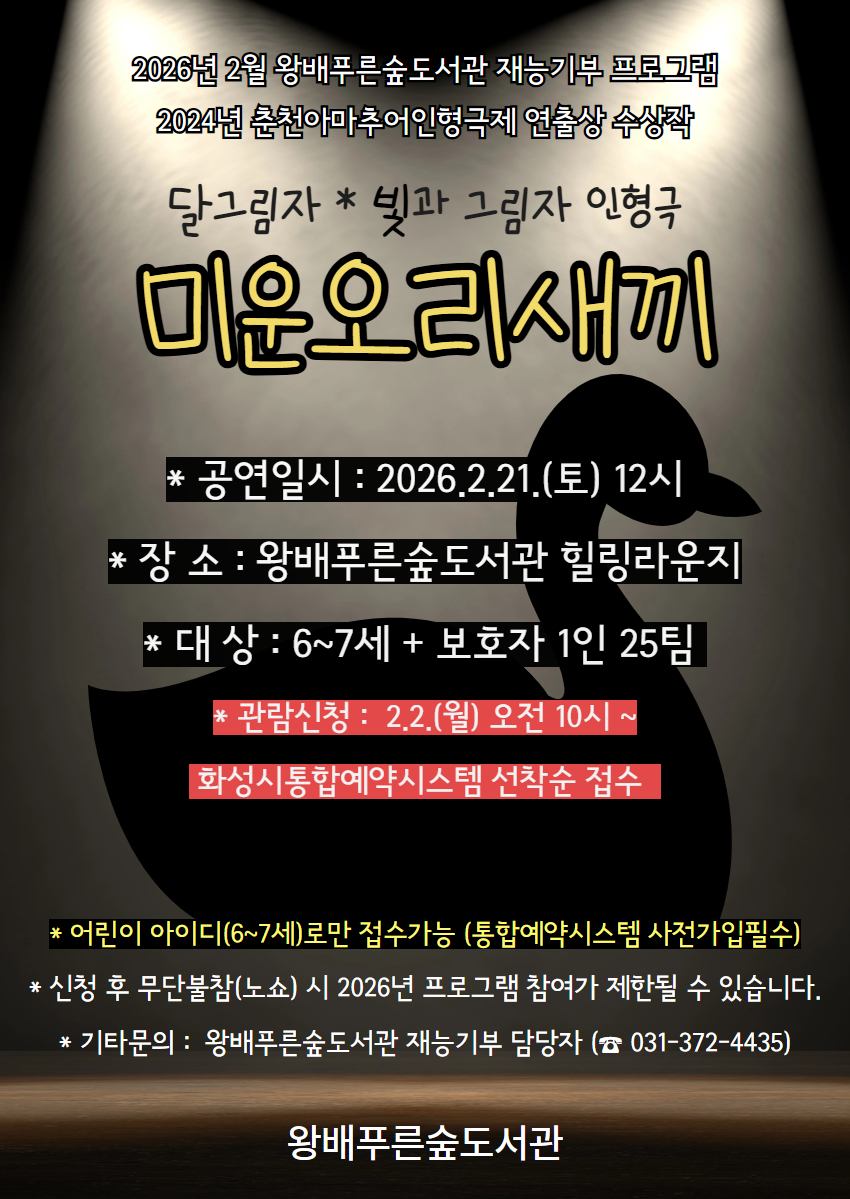 [2월 재능기부] 그림자 인형극 <미운오리새끼> 관람 신청 (6-7세)