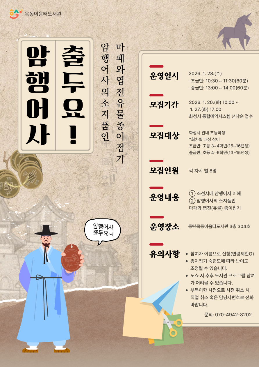[목동이음터도서관] 재능기부 프로그램 <암행어사 출두요!B>-초등4~6학년(13~15년생)