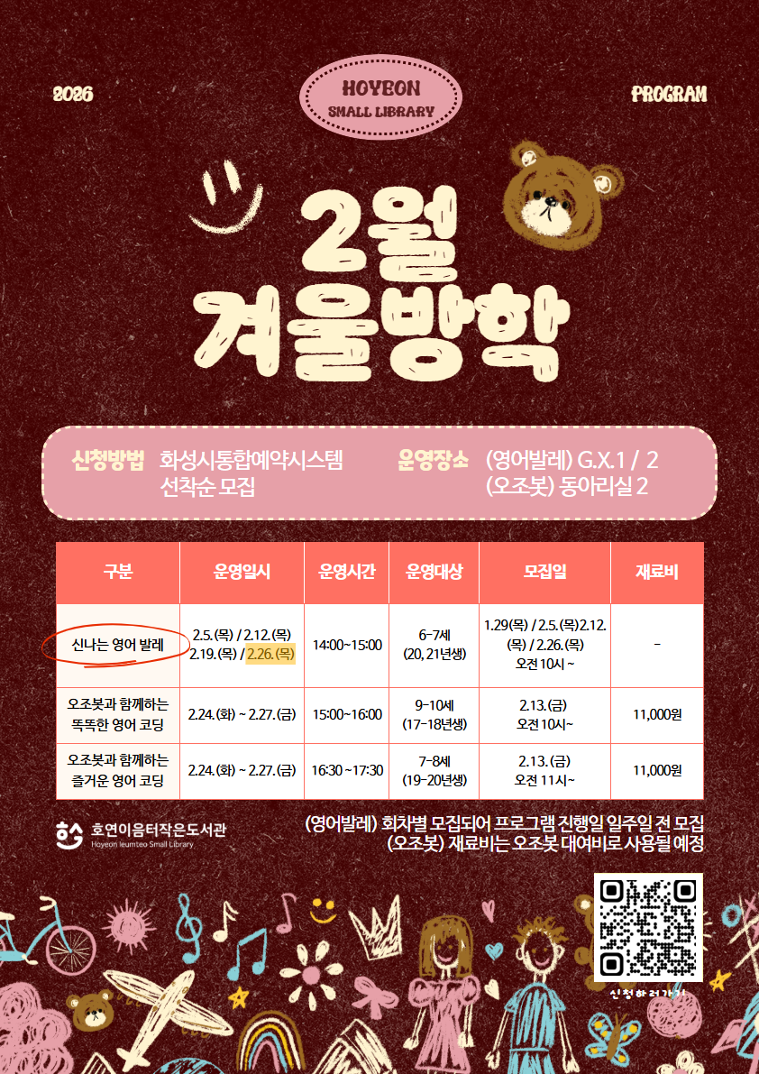 ★2/26★ [호연이음터작은도서관] 2월 겨울방학 <신나는 영어 발레>
