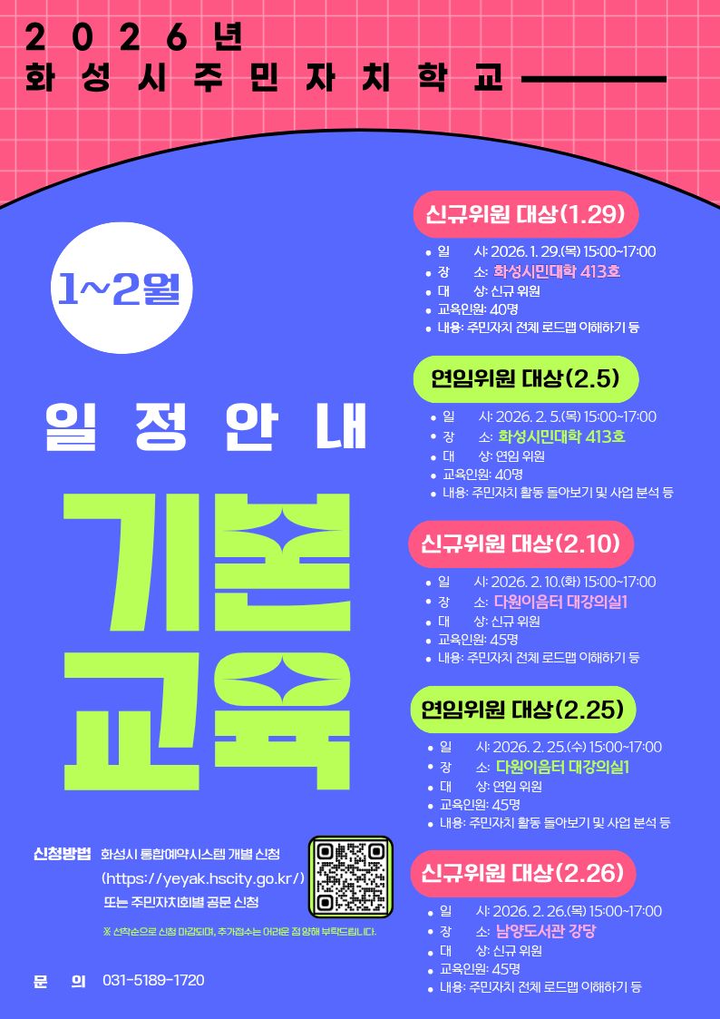 ※ 화성시 주민자치회 위원 필수교육과정입니다.(기본교육 대면교육 2시간)